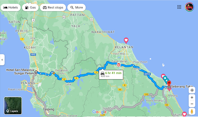 Kami memulakan perjalanan pada pukul 10:30 pagi melalui lalui Lembuhraya Timur Barat, Gerik-Jeli. Alhamdullilah jalan sangat lancar. Kami banyak kali juga berhenti untuk berehat seketika. Kami sampai di rumah ada pukul 8:00 malam.